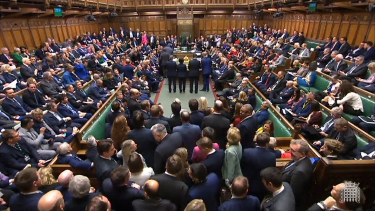 وصوت مجلس العموم الغرفة الرئيسية المنتخبة بالبرلمان البريطاني بتأييد 358 صوتا واعتراض 234 صوتا على مشروع قانون اتفاق جونسون للانسحاب من الاتحاد الأوروبي أمس، بأغلبية تأييد بلغت124 صوتا.