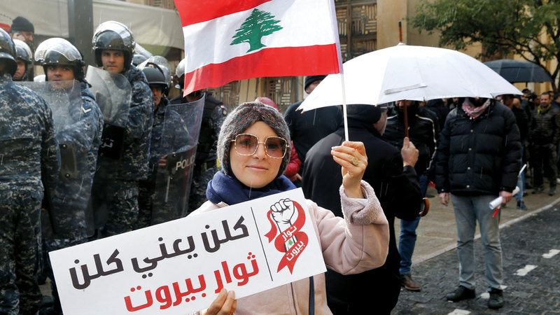 متظاهرة أمام بلدية بيروت خلال احتجاج ضد الحكومة. أ.ب