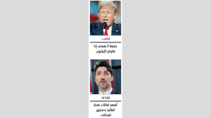 في السياق نفسه، وعد رئيس الوزراء الكندي جاستن ترودو، عائلات ضحايا تحطم الطائرة الأوكرانية في إيران بالعمل «بلا توقف حتى إحقاق العدالة»، وذلك خلال حفل تأبين في إدمونتون في غرب كندا، أول من أمس.
