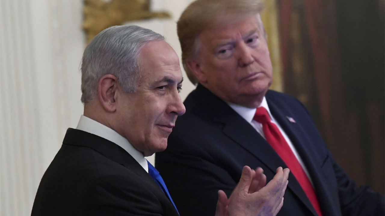 وأكد نتنياهو للصحافيين بعد أن قدم الرئيس الأميركي دونالد ترامب خطته للسلام، أن الولايات المتحدة تعترف بالقدس عاصمة غير مقسمة لإسرائيل.