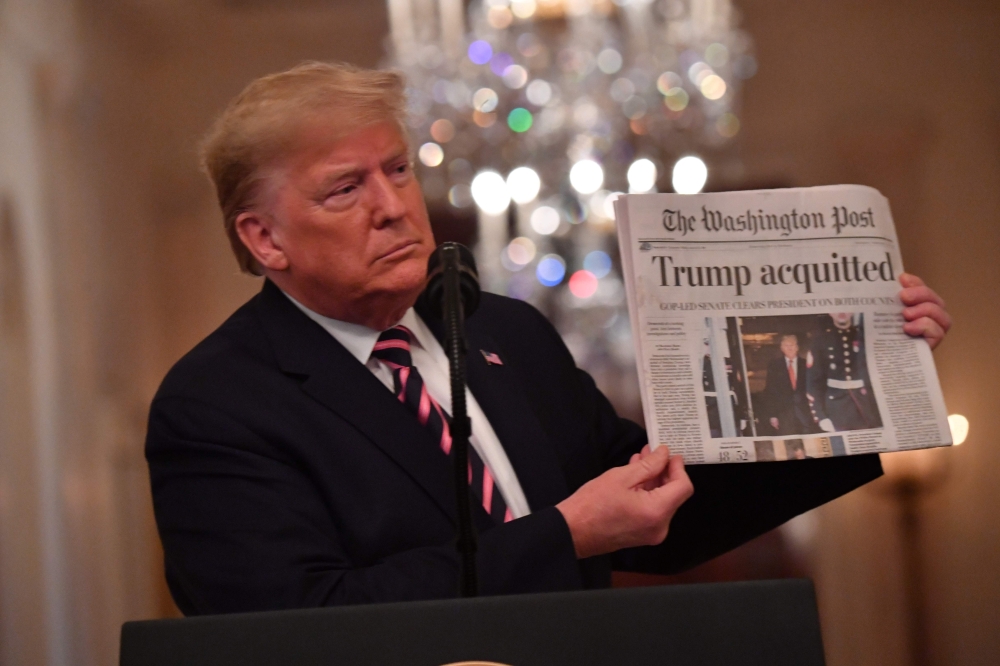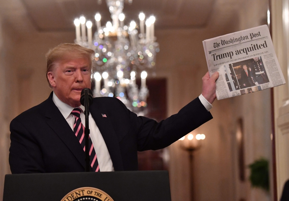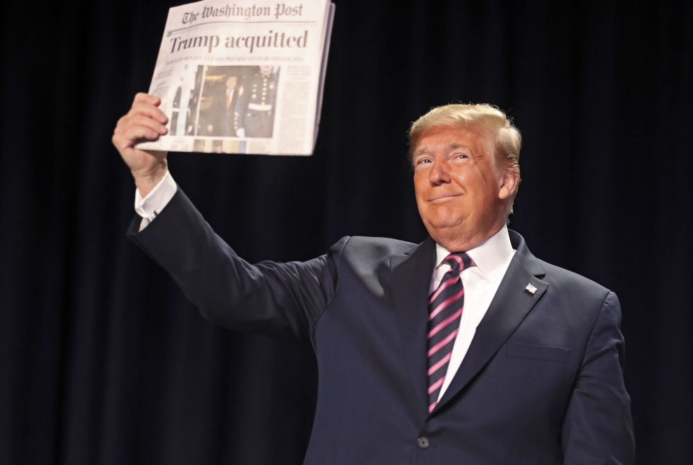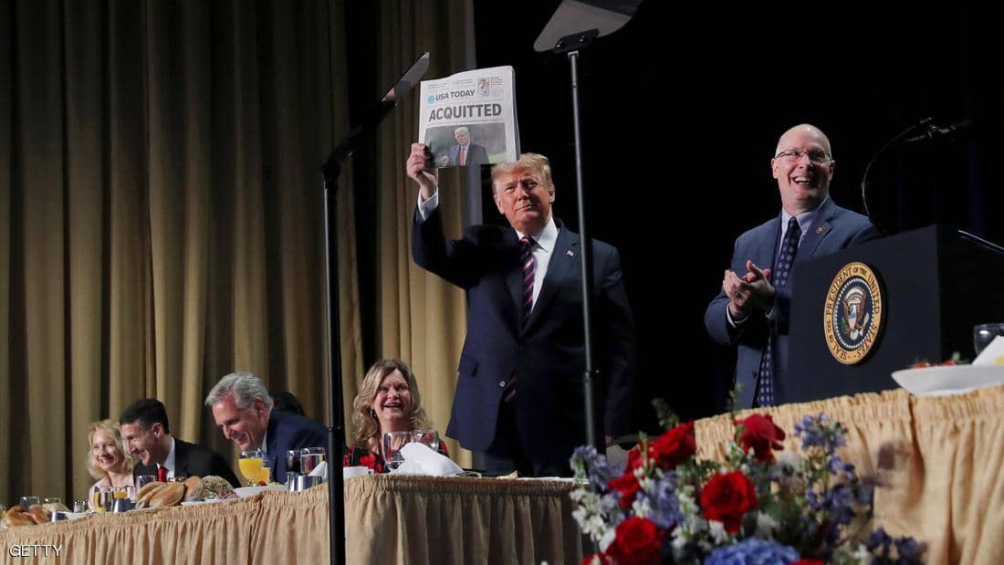 وفي اول تصريح له منذ أن برأه مجلس الشيوخ من تهمة استغلال المنصب، قال ترامب انه مر «بمحنة فظيعة من قبل بعض الاشخاص غير الشرفاء والفاسدين» مضيفا «لقد فعلوا كل ما بوسعهم لتدميرنا، ومن خلال القيام بذلك ألحقوا ضرراً كبيراً بأمتنا».