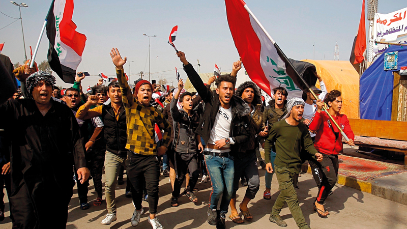 عراقيون خلال تظاهرة احتجاجية في مدينة النجف. أ.ب