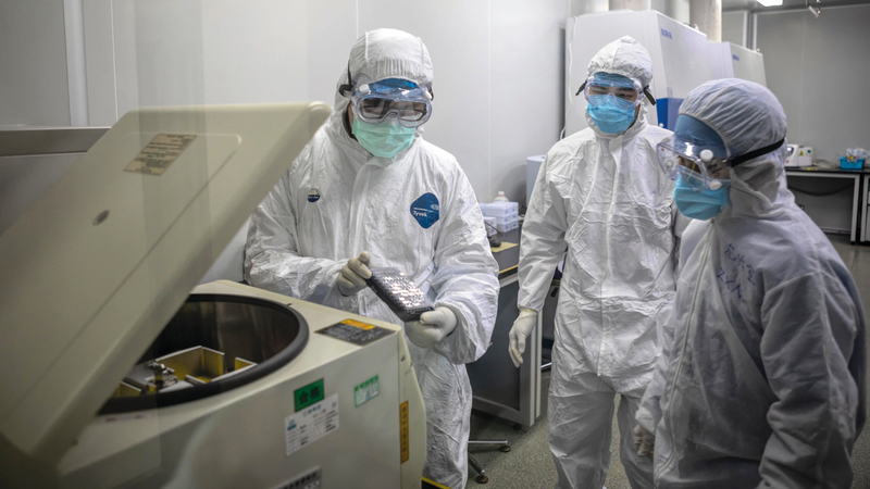 فحص عينات المصابين بالفيروس في أحد المختبرات الصينية. إي.بي.إيه