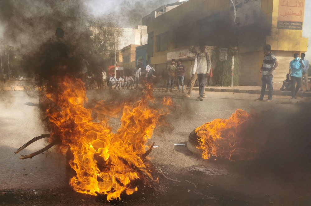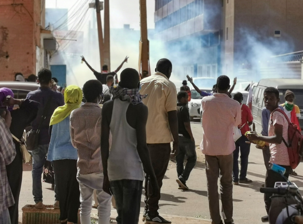وتجمع مئات المحتجين الشباب على مقربة من القصر الرئاسي وهم يحملون أعلام السودان ولافتات كتب عليها «الجيش جيش السودان»، «لا لإبعاد أحرار الجيش». وأحرق المتظاهرون إطارات قديمة وأغلقوا طرقا باستخدام الحجارة.