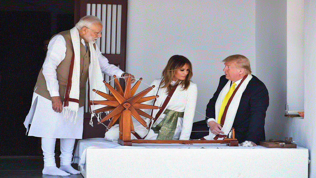واصطحب رئيس الوزراء الهندي، ناريندرا مودي، الرئيس الأميركي وزوجته ميلانيا ترامب في جولة في المقر الرئيسي للمهاتما غاندي والمعروف بـ"سابارماتي الأشرم".