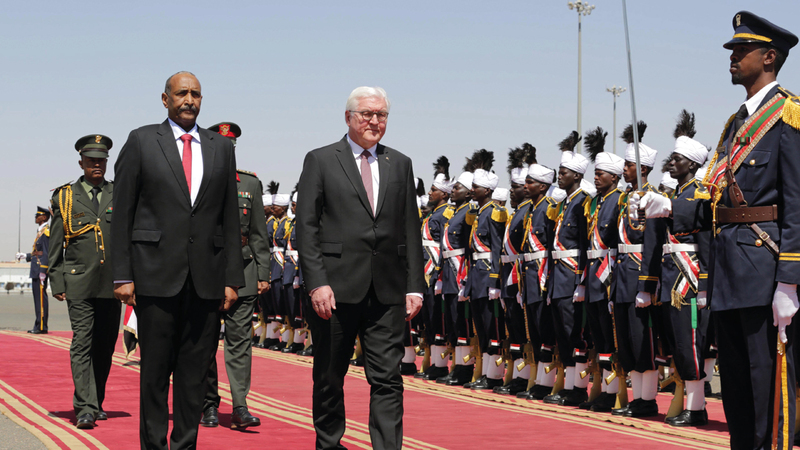 ووصف البرهان زيارة شتاينماير بأنها «إشارة قوية»، وأضاف: «إننا نسعى إلى أن نكون شركاء مع ألمانيا ومع الاتحاد الأوروبي»، وطلب الدعم كي يتم حذف بلاده من قائمة الولايات المتحدة للدول التي تدعم الإرهاب.
