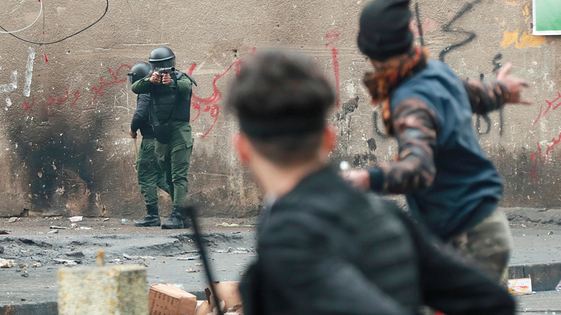 جانب من الاحتجاجات في بغداد ضد الحكومة العراقية. أ.ب