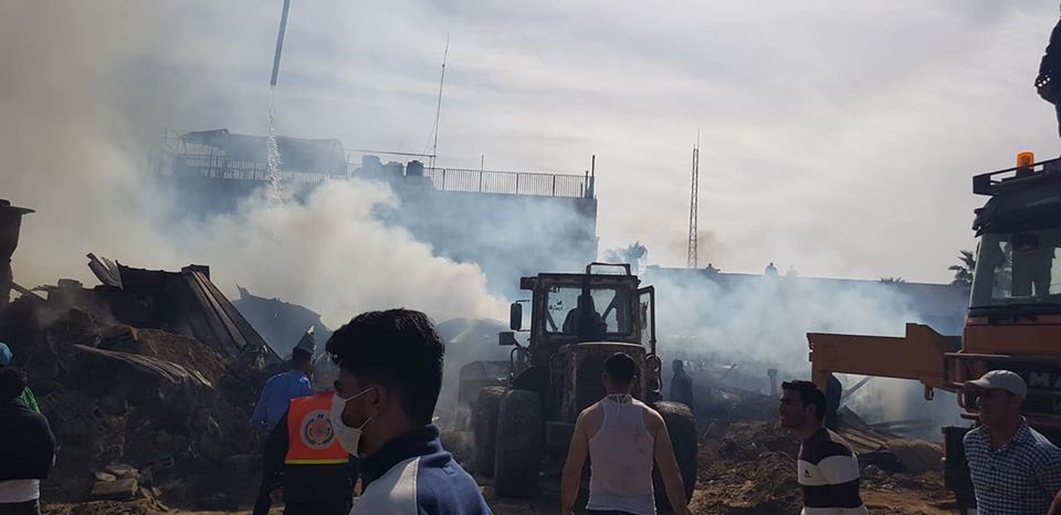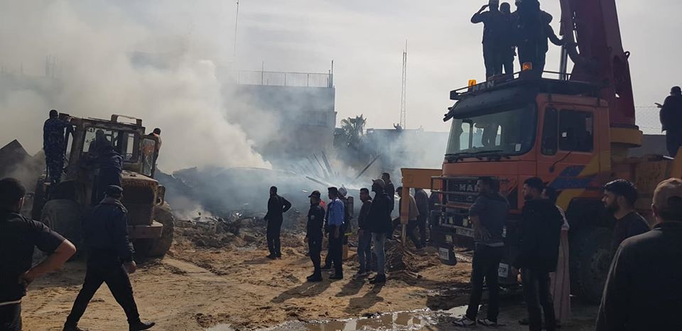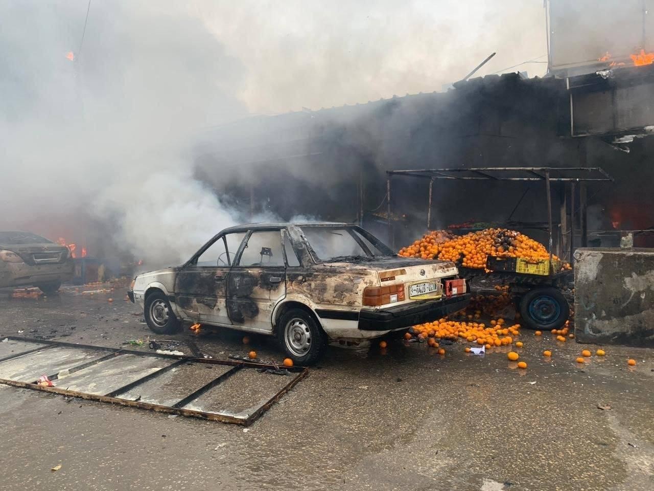 وقد كافحت طواقم من الدفاع المدني الفلسطيني لساعات من أجل السيطرة على الحريق الضخم الذي اندلع في سوق شعبية وطال محال تجارية عدة.