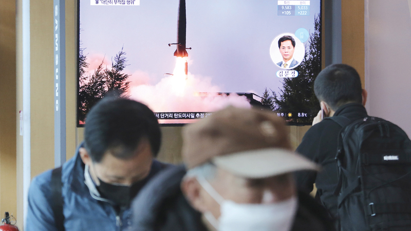 برنامج إخباري في كوريا الجنوبية يظهر به إطلاق صاروخ من كوريا الشمالية. أ.ب