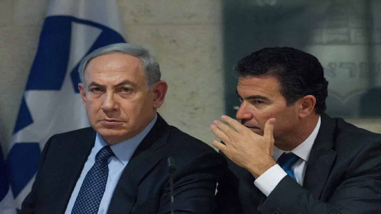 نتنياهو الى جواره رئيس جهاز الموساد يوسي كوهين.