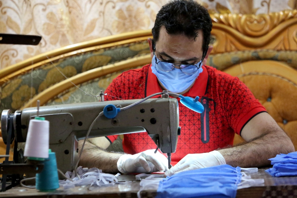 لهذا السبب، حوّل أسعد الساعدي (40 عاماً) منزله في شرق العاصمة بغداد، إلى ورشة لتصنيع الكمامات الطبية وتوزيعها مجاناً على المواطنين.