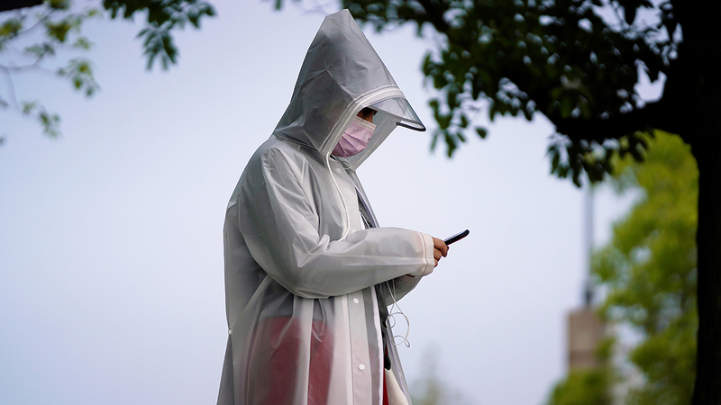 امرأة ترتدي قناعاً وملابس واقية في مدينة ووهان الصينية. رويترز