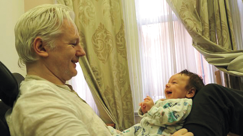 أسانغ تمكن من لقاء ابنه غابريال في السفارة التي نُقل إليها سراً. من المصدر