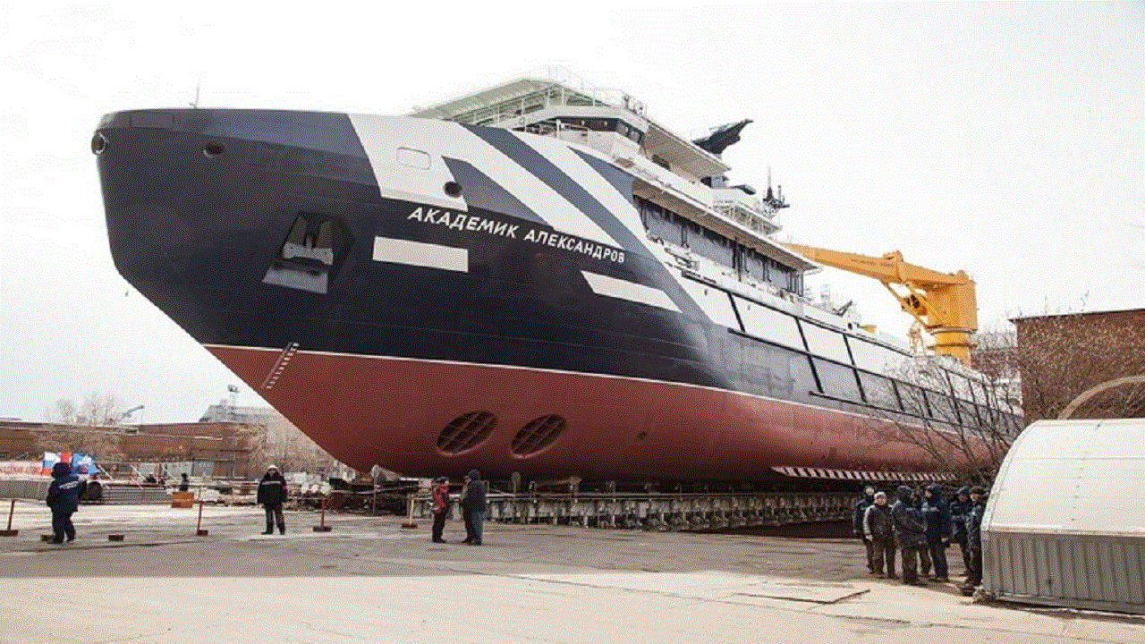 سلم مصنع "زفيزدوتشكا" الروسي للسفن إلى وزارة الدفاع الروسية سفينة "الأكاديمي ألكسندروف" العلمية المتخصصة في دراسة أعماق البحر.