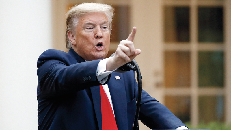 President Donald Trump speaks about the coronavirus in the Rose Garden of the White House, Tuesday, April 14, 2020, in Washington. (AP Photo/Alex Brandon)
