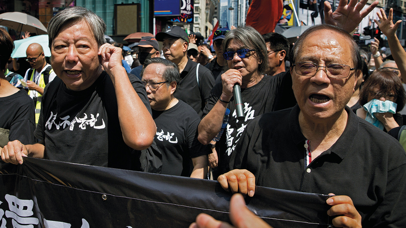 صورة ارشيفية تجمع عدد من النشطاء المؤيدين للديموقراطية في هونغ كونغ ممن تم اعتقال بعضهم. ا.ب