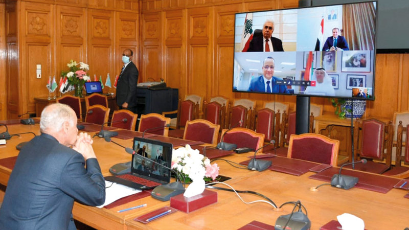 أعمال الدورة غير العادية لمجلس جامعة الدول العربية على المستوى الوزاري جرت عبر «الفيديو كونفرانس». ■ من المصدر