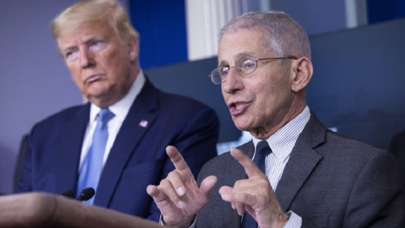 فاوتشي يتحدث وإلى جواره ترامب خلال مؤتمر صحافي سابق في البيت الأبيض.