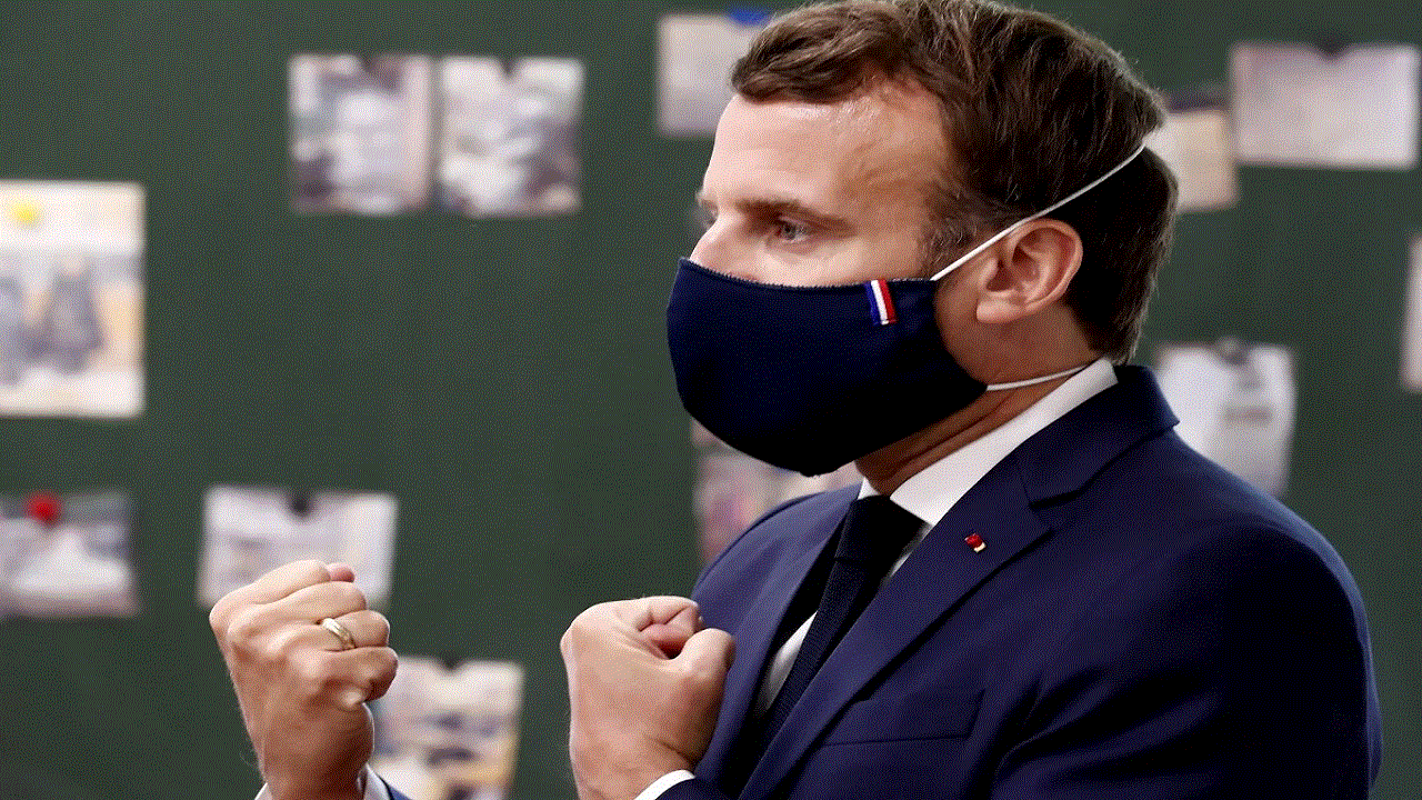 ماكرون "الشرير" يرتدي كمامة "على الموضة" لـ"كورونا"