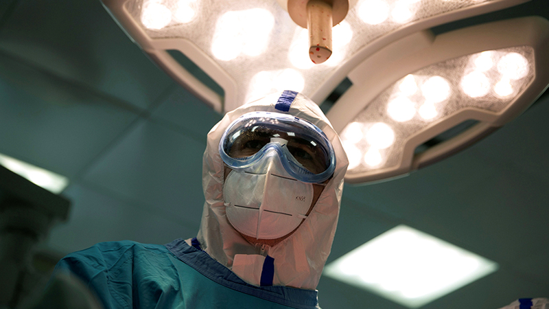 طبيب روسي في أحد المستشفيات المخصصة لمرضى «كورونا» في موسكو. رويترز