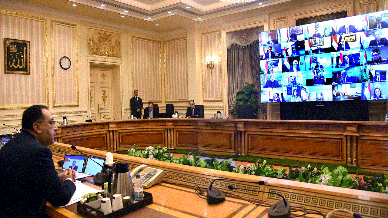 مدبولي خلال اجتماع بالفيديو مع أعضاء حكومته. أرشيفية
