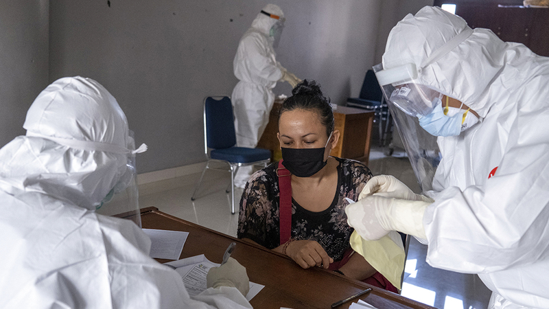 إندونيسية بأحد مراكز فحص «كورونا» في بالي. إي.بي.إيه