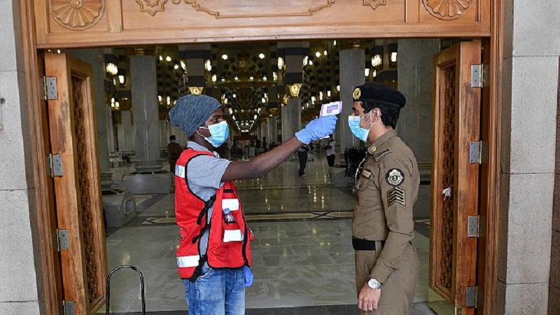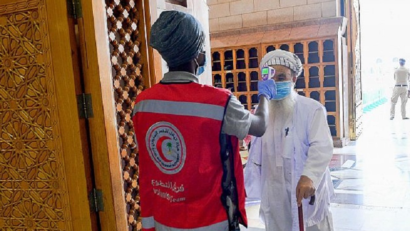 تتوزع على أبواب المسجد النبوي المُحددة لدخول المصلين، فرق طبية وإسعافية متخصصة تتولى عملية الكشف على المصلين قبل دخولهم للمسجد النبوي وكذلك العاملين.
