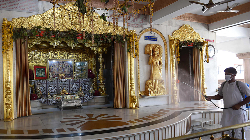 عامل يقوم برش مطهر في أحد المعابد الهندوسية. أ.ف.ب