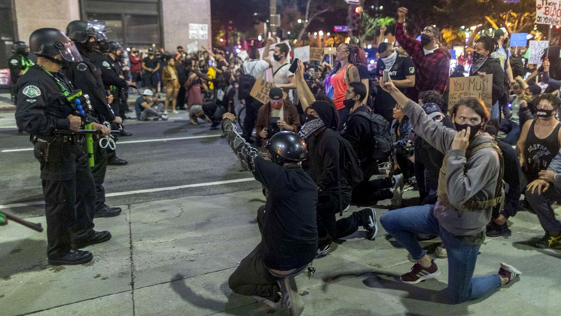 محتجون في لوس أنجلوس ضد عنف الشرطة الأميركية. أ.ف.ب