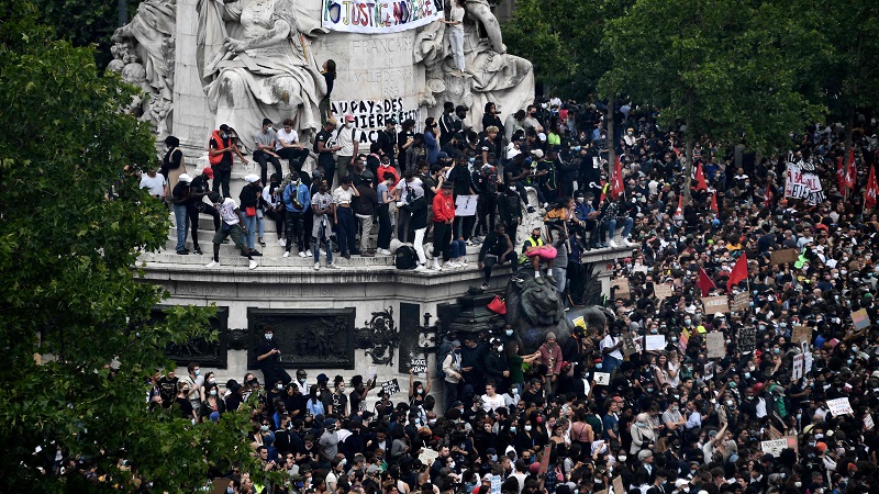 احتج آلاف الأشخاص في وسط باريس، اليوم السبت، في أحدث مظاهرة ضد العنصرية والعنف المزعومين من قبل الشرطة.