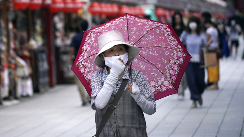 امرأة ترتدي كمامة في ساحة تسوّق بطوكيو. أ.ب