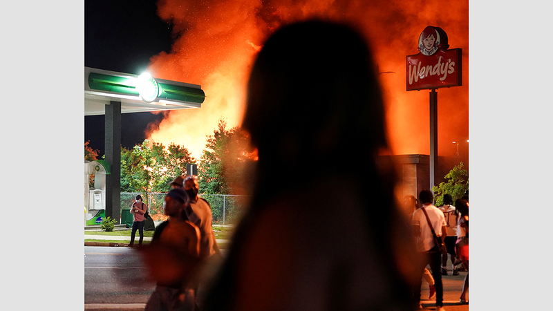 ونشرت وسائل الإعلام المحلية صوراً ظهر فيها مئات المحتجين في الشوارع، والنيران تشتعل في أحد مطاعم سلسلة «وينديز» للوجبات السريعة.