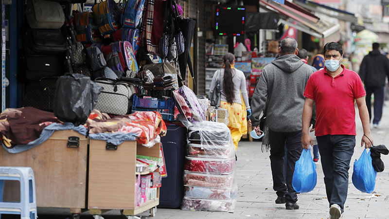 متسوقون يسيرون بجوار متاجر التجزئة المفتوحة في لندن بعد رفع بعض القيود.■ أ.ب
