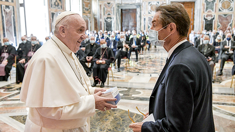 عقد البابا فرنسيس، أمس، أول لقاء مع جمع من الناس في الفاتيكان، منذ أن رفعت إيطاليا إجراءات العزل العام التي فرضتها لمكافحة فيروس كورونا المستجد، وخصص اللقاء لطواقم طبية من أكثر مناطق إيطاليا تضرراً بالجائحة. وقال البابا أمام مجموعة من الأطباء وطواقم التمريض من منطقة لومبارديا في قاعة كليمنتينا التي ظلت مغلقة شهوراً بسبب «كورونا»: «كنتم من الأعمدة الأساسية للبلاد بأكملها». وأضاف «إلى من هم هنا منكم، وإلى زملائكم في إيطاليا، أقدم احترامي وشكري البالغ، وأعلم يقينا أني أعبر عن شعور الجميع». ووجه الشكر للعاملين في القطاع الطبي، ووصفهم بأنهم «ملائكة»، مثنياً على تصرفاتهم كإعارة هواتفهم لمرضى في لحظاتهم الأخيرة كي يودعوا أحباءهم.