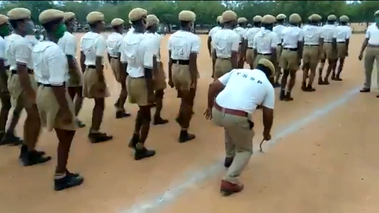 وقد جاء في النصّ المرافق له "قوّات الحماية الخاصة بولاية تيلانغانا تغني أثناء إجراء التدريبات البدنية".