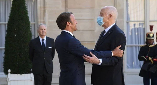 استقبال ماكرون للرئيس التونسي دون كمامة يثير الجدل