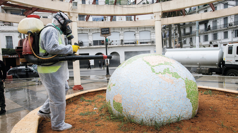 تعقيم إحدى الحدائق العامة في الجزائر. رويترز