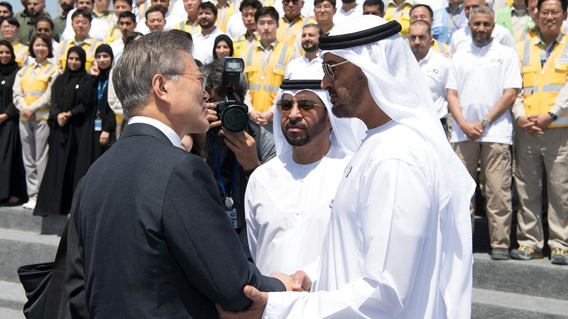 وأكد سموه أن العلاقات الثنائية بين الإمارات وكوريا الجنوبية شهدت نمواً ملحوظاً منذ إقامة العلاقات الدبلوماسية الرسمية بينهما عام 1980، وقال سموه: على مر السنين تطلعت دولة الإمارات للتعاون مع كوريا الجنوبية نظراً لخبرتها الكبيرة في مجالات التصنيع والتكنولوجيا، وتطلعت كوريا الجنوبية للتعاون مع الإمارات نظراً لخبرتها الكبيرة في مجال الخدمات اللوجستية والتجارة والسياحة في الشرق الأوسط، مشيراً سموه إلى أن العلاقات الثنائية بين البلدين وصلت إلى مرحلة مهمة عندما وقعت الإمارات عقوداً مع شركة الطاقة الكهربائية الكورية و«هيونداي» و«سامسونغ سي آند تي» للمساعدة في بناء أول محطة للطاقة النووية في العالم العربي، حيث ستلبي محطة براكة للطاقة النووية 25% من احتياجات الإمارات المحلية من الطاقة عندما تبدأ العمل بكل طاقتها، مما سيخفض من انبعاثات الغازات المسببة للاحتباس الحراري بمقدار 21 مليون طن سنوياً.