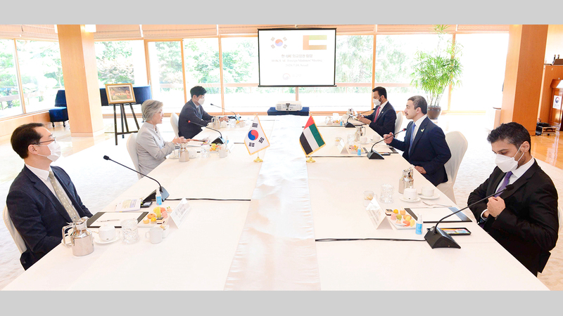 كما أكد سموه ووزيرة خارجية كوريا الجنوبية، أهمية استمرارية تبادل الزيارات بين البلدين الصديقين، وذلك انطلاقاً من العلاقات الاستراتيجية الخاصة التي تجمع بين دولة الإمارات وكوريا الجنوبية.
