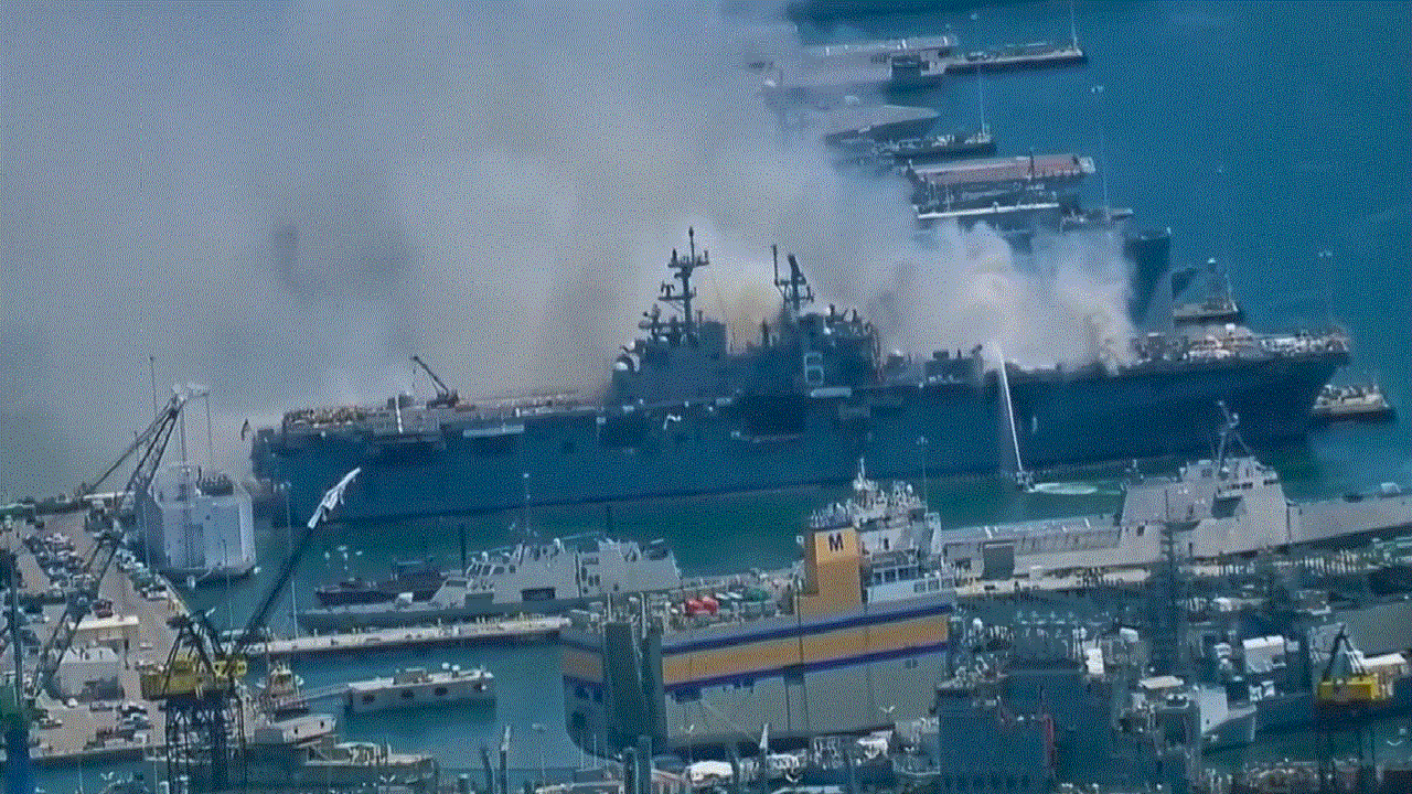 وأظهرت القنوات التلفزيونيّة الأميركيّة دخانًا كثيفًا يتصاعد من السفينة الحربيّة الهجوميّة يو إس إس بونوم ريتشارد التي كانت تخضع لأعمال صيانة في القاعدة البحريّة في سان دييغو. وانتشرت قوارب الإطفاء حول السفينة وعمدت إلى مكافحة الحريق بخراطيم المياه.