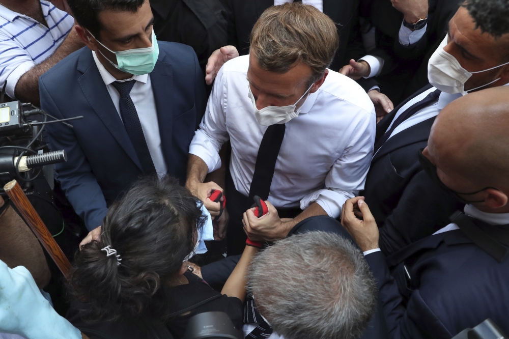 بهتافات «الشعب يريد إسقاط النظام» و«ساعدونا»، استقبل لبنانيون الرئيس الفرنسي إيمانويل ماكرون الذي تفقد سيراً على الأقدام شارع الجميزة الأثري في شرق بيروت المتضرّر بشدّة جراء انفجار المرفأ قبل يومين.
