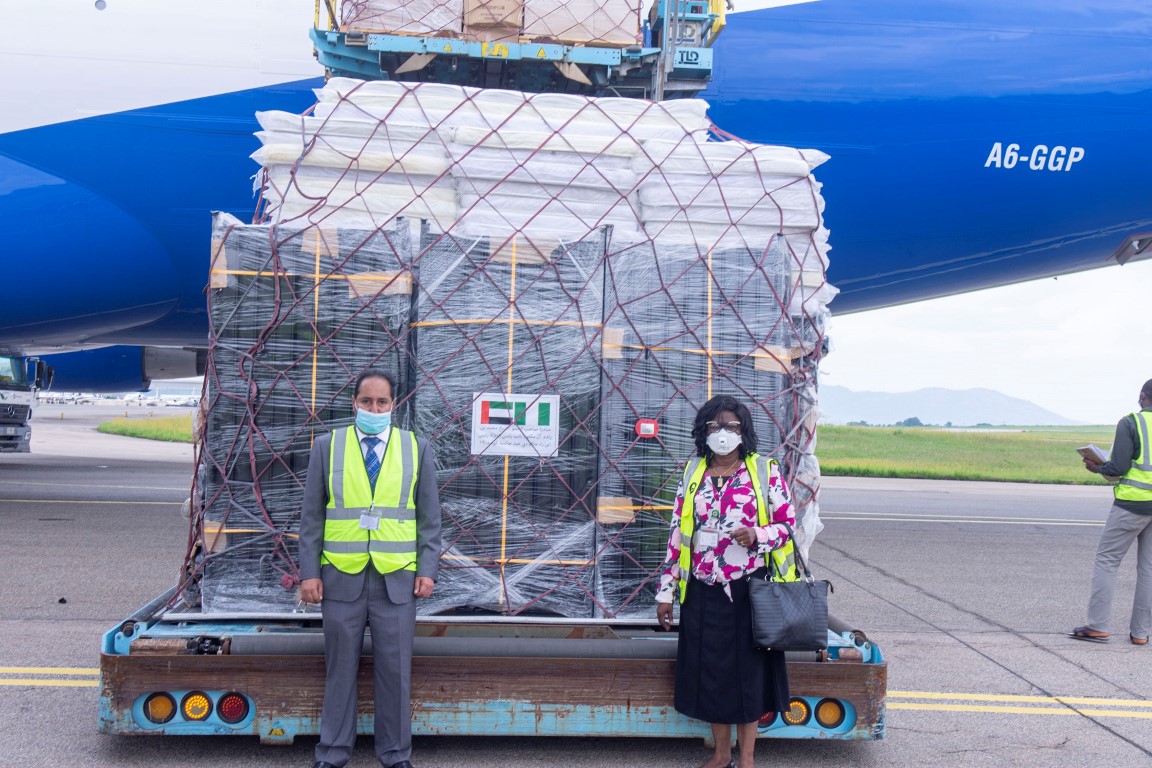 كما أمر سموه بإرسال شحنة مساعدات طبية وغذائية مماثلة إلى نيجيريا لمساعدة الكوادر الطبية بها على القيام بدورها على أكمل وجه و مساعدة المصابين بالفيروس، في تأكيد واضح على تضامن الإمارات مع جميع الدول الشقيقة و الصديقة في الأزمات التي تتطلب تضافر الجهود كافة للتخفيف من آثارها.