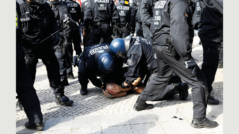 فرّقت الشرطة في برلين، أمس، تظاهرة لمعارضي وضع الكمامات والقيود المتخذة لاحتواء تفشي «كوفيد-19»، لعدم احترام المشاركين فيها الذين بلغ عددهم نحو 18 ألفاً، التدابير الوقائية.