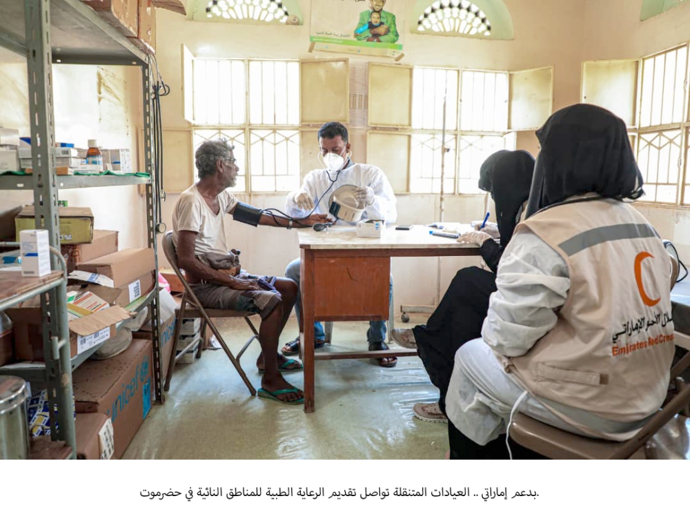 تواصل دولة الإمارات تقديم الرعاية الطبية المجانية لسكان القرى البعيدة في مختلف مناطق محافظة حضرموت عبر العيادات الطبية المتنقلة التي تسيّرها هيئة الهلال الأحمر الإماراتي وذلك ضمن الدور الإنساني الذي تقوم به الدولة لتخفيف معاناة السكان في هذه المناطق.