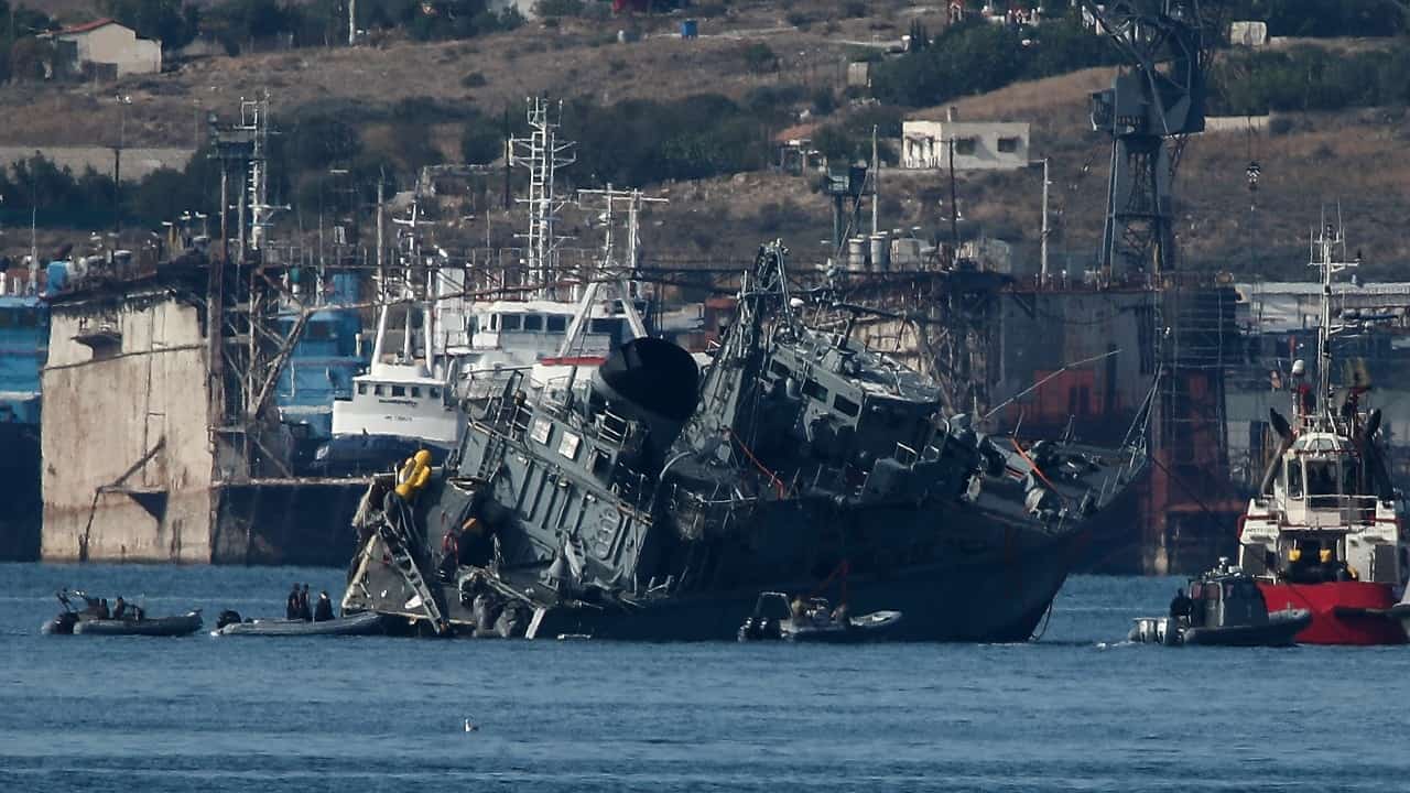 وأظهرت لقطات تلفزيونية السفينة التابعة لأسطول اليونان تميل على جانبها وتغرق. واقترب منها زورق قطر ومن المتوقع أن يسحبها إلى الشاطئ.