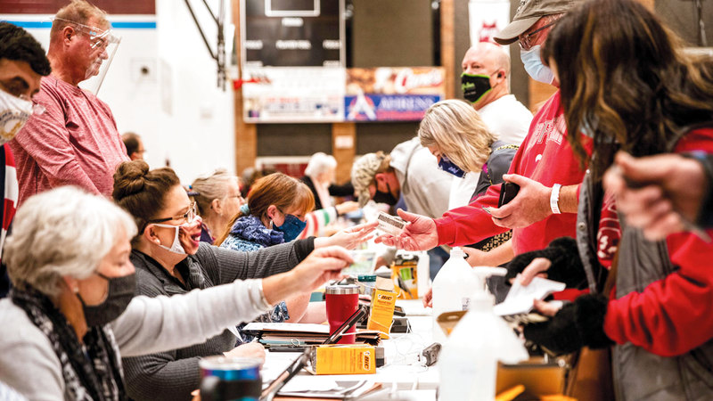 أميركيون يدلون بأصواتهم في أحد مراكز الاقتراع أمس. أ.ف.ب
