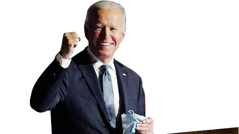 بايدن خلال مخاطبة أنصاره في ويلمينغتون. أ.ب