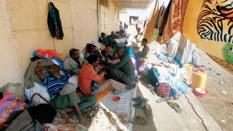 إثيوبيون فروا من القتال ينتظرون دخول السودان. رويترز