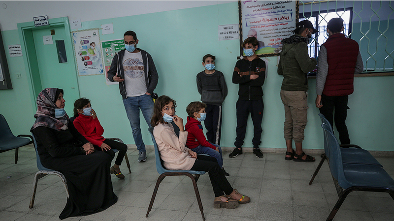 فلسطينيون ينتظرون نتائج الفحص قبل سفرهم عبر معبر رفح. إي.بي.إيه