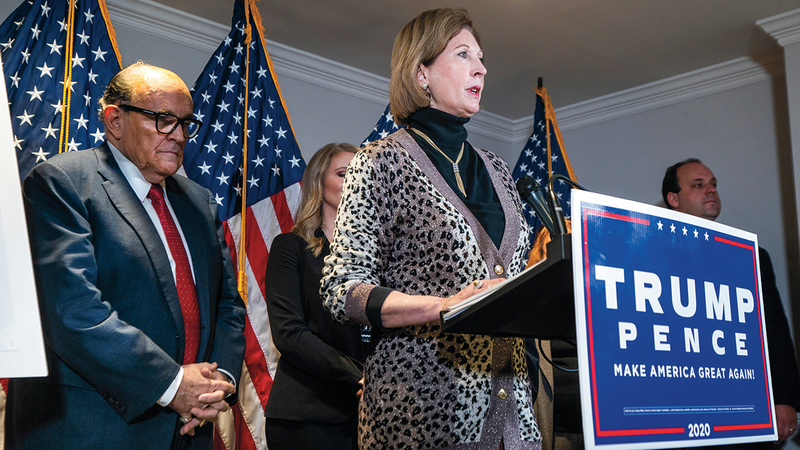 - باول زعمت أن «أنظمة احتيال إلكترونيّة، استُخدِمت لتحريف نتائج الانتخابات، وسرقة ملايين الأصوات من ترامب».